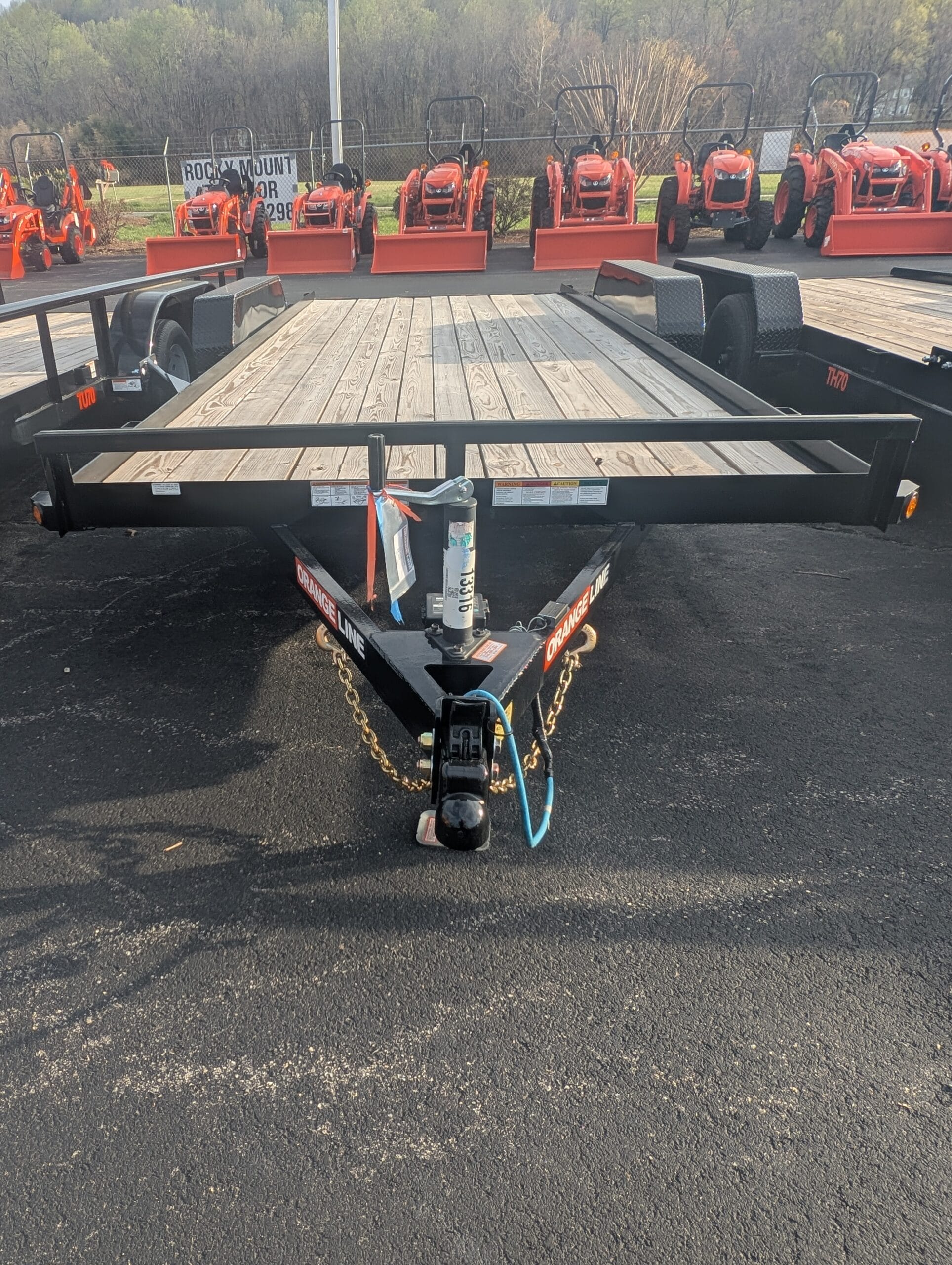 Orange line TH70-18BK4AR2B – 83″ x 18′ tandem axle utility/equipment trailer with 4′ slide-in ramps and two electric brakes. What was once $5,399 is now $5,099!!!!!!!!!!!